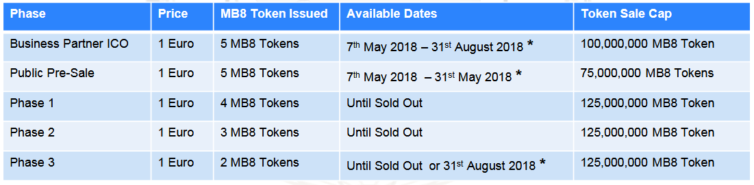 As the platform expands, our network Blockchain will introduce additional services to increase the cost or other services for business partners and customers. Upon completion of the ICO, the share of MB8 coins will be held by Multibuy Company Limited.
