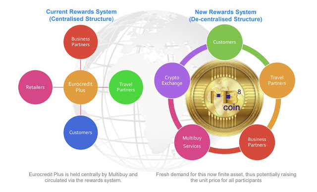 Already proven and highly successful, the expansion of our Eurocredit Plus loyalty rewards system was an obvious opportunity to utilise the efficiencies which Blockchain technology brings. By replacing our traditionally “closed system rewards model” we aim to expand to many new markets, leveraging the innovation of this exciting space. This transition will also allow for the platform to be greatly enhanced and expanded for the benefit of all participants. After the launch, our existing Eurocredit Plus rewards platform will close to new customers and be swapped for our cryptocurrency called MB8 Coin.